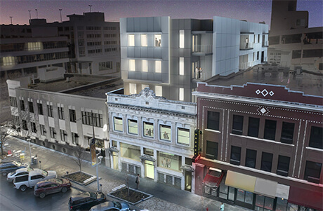 1 bedroom unit facing west with a private balcony. Stacked washer & dryer in unit. Access to rooftop patio. Parking at nearby city parking garage available.